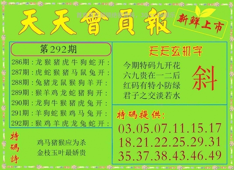 292期:╠平特一尾╣【8888】开:虎28准 |