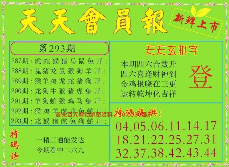 293期:╠平特一尾╣【4444】开:龙14准 |
